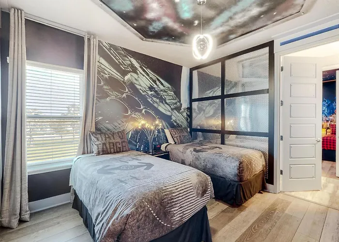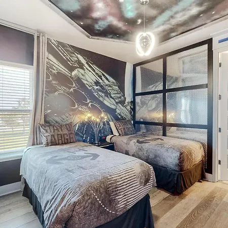 Die Ec418 - Rock 'N' Roll Villa With Splash Pad At Encore Orlando bietet einen Swimmingpool zur Entspannung der Gäste und befindet sich im Viertel Celebration.